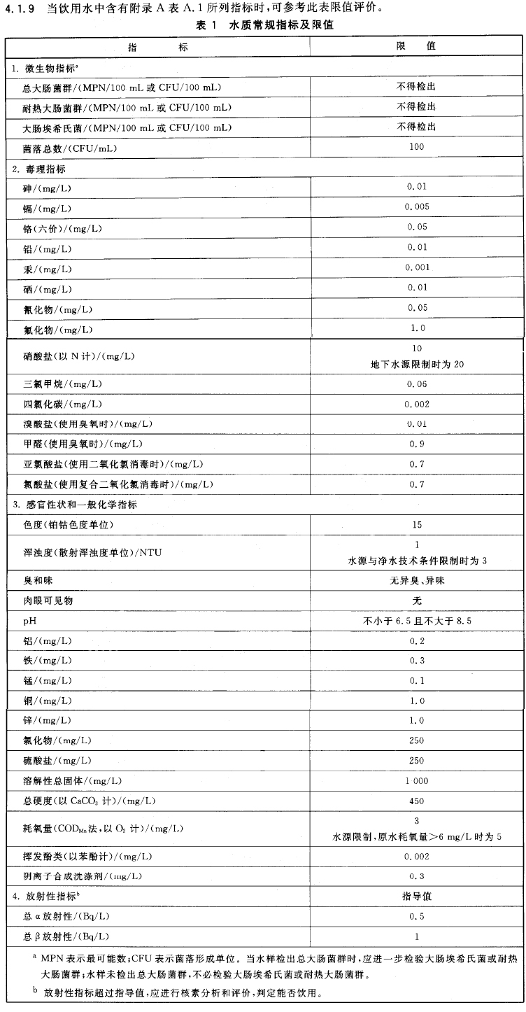 依据生活饮用水国家强制性标准:GB 5749-2006 生活饮用水卫生标准:
