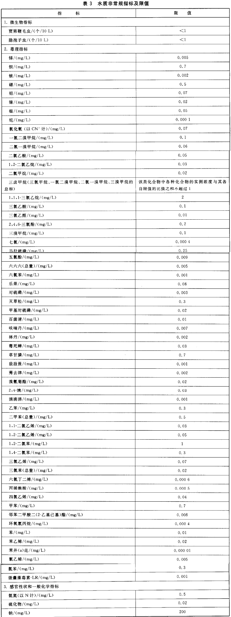 生活饮用水卫生标准指标